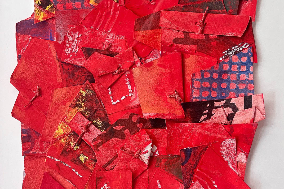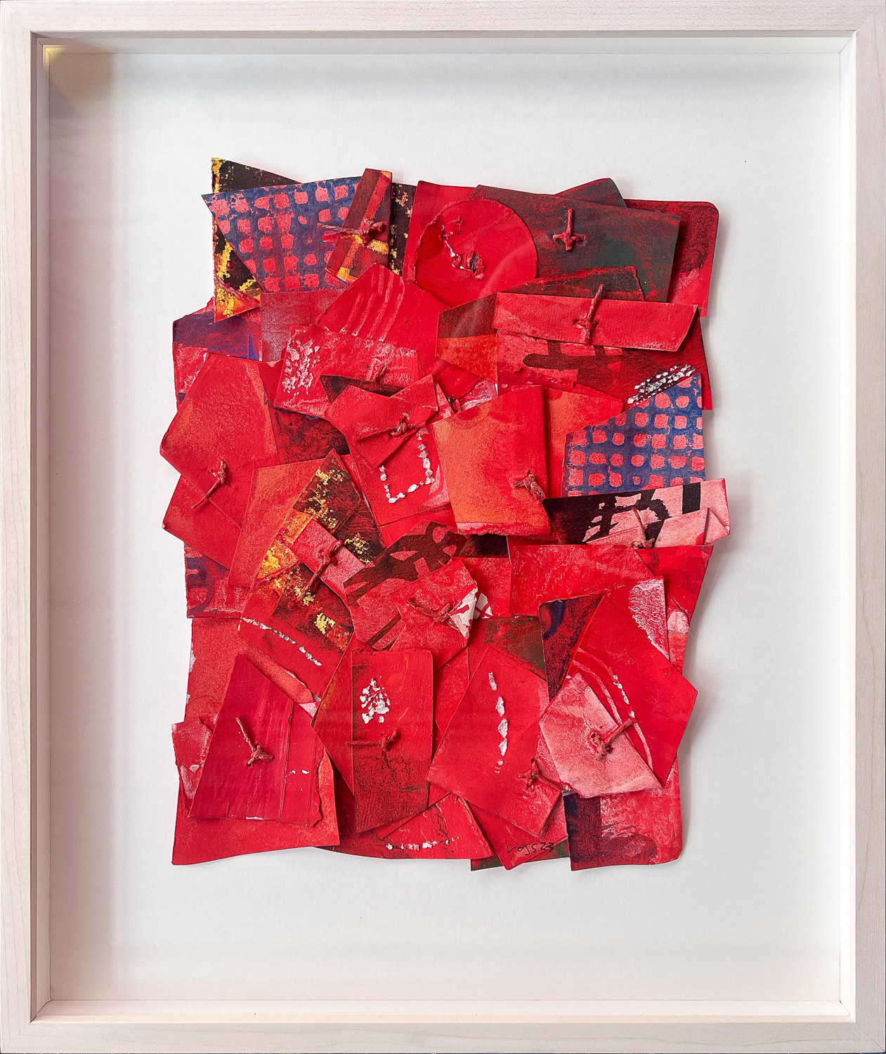 Er schuf auch Holz- und Papier-Reliefs und Aquarelle. Alle Arbeiten zeichnen sich durch eine Anhäufung von verschiedenen Farb- und Formelementen aus, die ineinandergreifen, sich überschneiden und durch Zeichen und Linien miteinander verbunden sind. Anfangs nur in der zweiten Dimension gehalten, dehnte Voss diese Ausdrucksform auch auf die dritte Dimension aus und begann in den 1980er Jahren seine Bilder zu zerknittern, zu falten, zu zerreißen und zu sägen. Quelle: Wikipedia